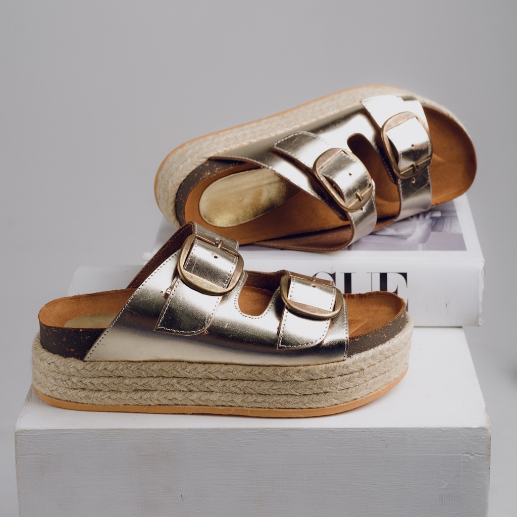 Frida es la elección perfecta para quienes buscan estilo y confort. Confeccionadas en cuero y eco cuero, y base antideslizante, estas sandalias son ideales para cualquier ocasión. Disponibles en chocolate, beige, negro, oro y plata, en tallas del 35 al 40. Guía de talles: