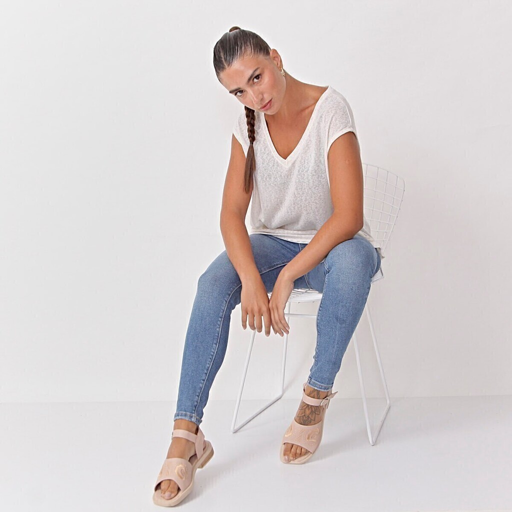 Nina es la opción ideal para quienes buscan estilo y comodidad. Con capellada y forro de eco cuero, estas zapatillas ofrecen confort y estabilidad en cada paso. Disponibles en color nude y en tallas del 35 al 40. Guía de talles: