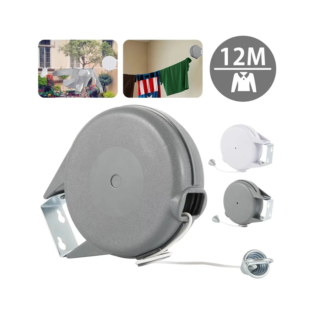 Este tender tipo enrollable es la solución perfecta para quienes buscan funcionalidad sin ocupar espacio. Su sistema de enrollado automático de estilo francés te permite extender un solo cable de alta resistencia hasta 12 metros, ideal para colgar gran cantidad de ropa en interiores o exteriores.El cable de 3 mm de grosor, fabricado en poliéster recubierto con resina plástica, ofrece gran durabilidad frente a la intemperie y el uso frecuente. Podés regular el largo del cable fácilmente con una sola mano gracias a su sistema con freno automático, lo que permite fijarlo a la medida que necesites.No requiere esfuerzo ni mantenimiento, y su estructura compacta mide solo 21 cm de ancho x 18 cm de alto x 8 cm de profundidad cuando está cerrado. Soporta hasta 15 kg de carga sin perder tensión, lo que lo hace ideal para uso diario. Se instala fácilmente con los tornillos y tarugos incluidos.Características destacadas:Sistema enrollador automático tipo francésCable único de 12 m de longitud totalMaterial resistente a la intemperie y al desgasteSoporte de eje con componentes de plástico de ingenieríaInstalación simple y sin complicacionesCapacidad máxima de carga: 15 kgLibre de mantenimientoUna solución eficaz, compacta y duradera para colgar tu ropa sin ocupar espacio extra.